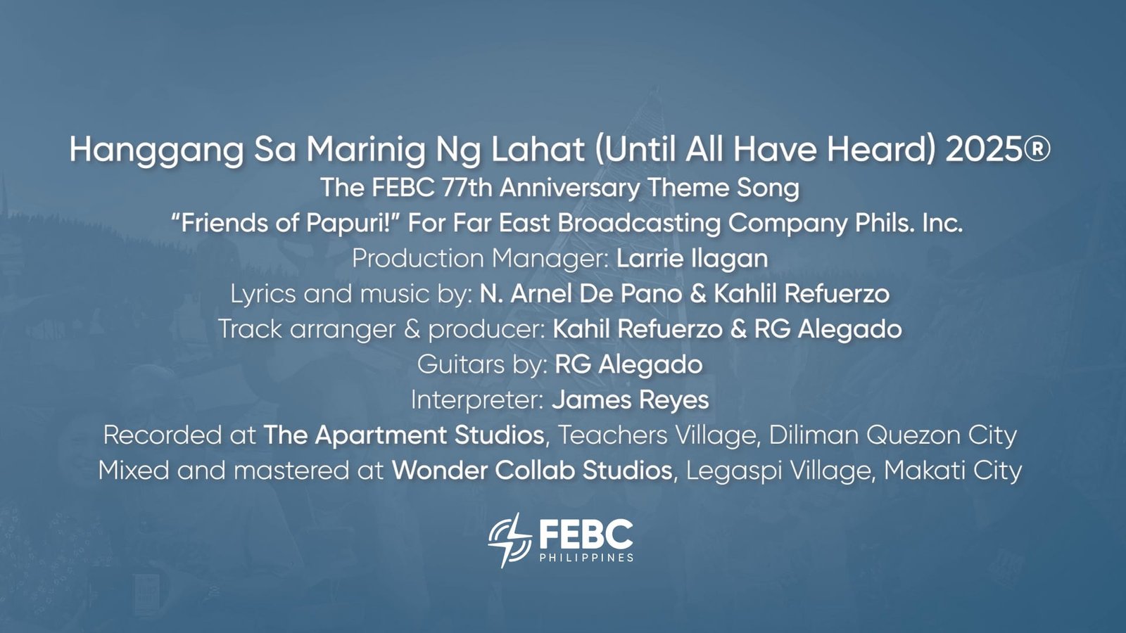 As we joyfully celebrate 77 years of faithfully communicating Christ, we’re excited to present our special anniversary theme song, “Hanggang Sa Marinig Ng Lahat.” This song expresses our heart and mission: to reach every corner of the world until all have heard.